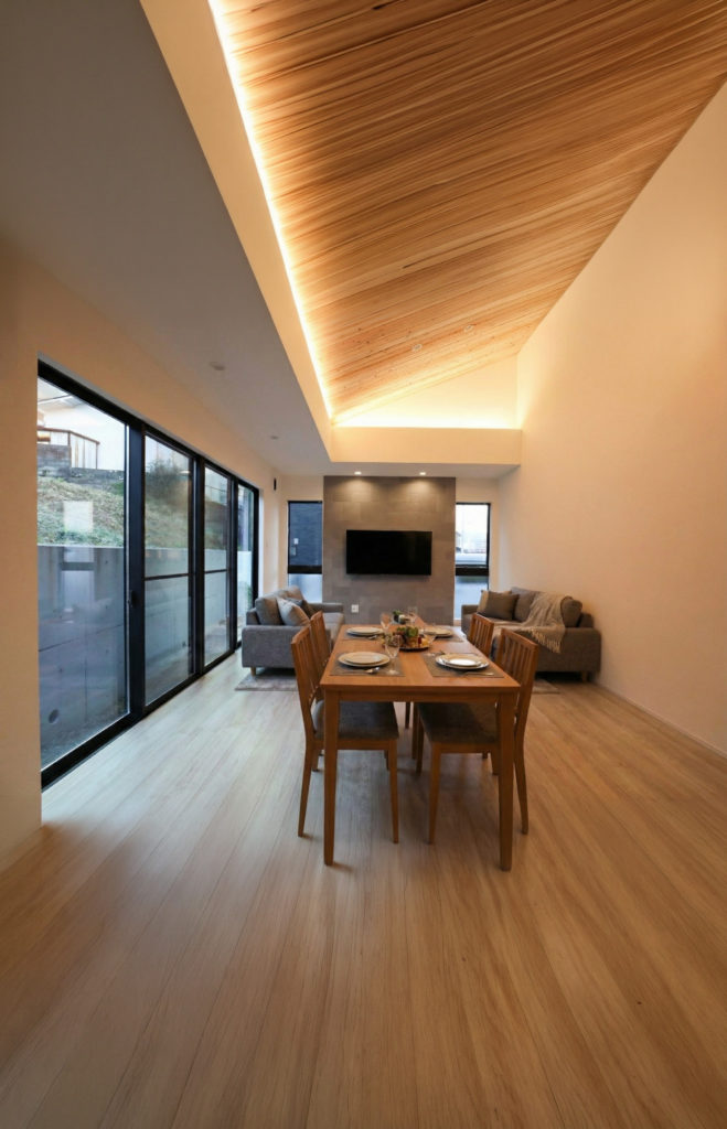 - 勾配天井で天井高を活かす