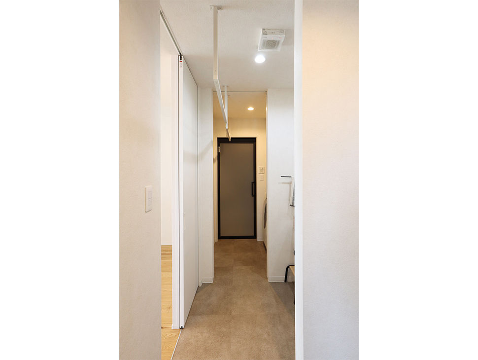日々の暮らしを支えるのは、家族を想った動線計画。 玄関ホールには来客用の手洗いスペースを設け、汚れた手でドアに触れることなく清潔を保てます。 さらに、玄関からバスルームへ直行できる「ただいま動線」は、小さなお子様のいるご家庭に特に喜ばれる工夫です。